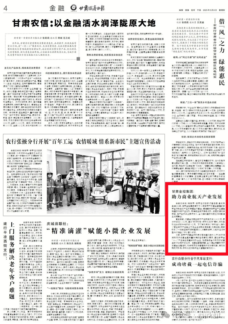 甘肅金控集團(tuán):助力商業(yè)航天產(chǎn)業(yè)發(fā)展