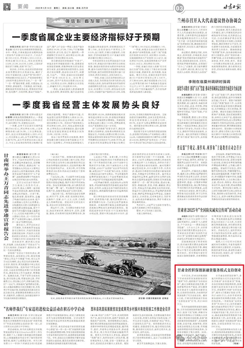 媒體關注 | 甘肅金控擔保創新融資服務模式 為創業“貸”來新機遇